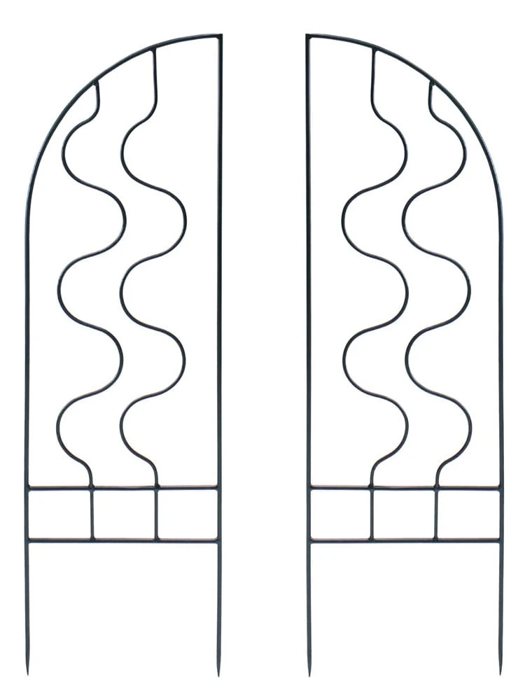 For any avid gardener or plant lover, finding enough vertical space for your climbing vines, flowers, vegetables, or runners can be a challenge. Many people choose traditional wrought iron trellises and arbors for their combination of strength and graceful style. With the Primrose Trellises by ACHLA Designs, you get not only the functionality of a sturdy plant support, but also the artistic beauty of an elegant wrought iron feature. The light and airy Primrose Trellis provides large-scale support and screening without feeling massive. The gently arching center trellis can be used on its own or with the corresponding side trellises. Place the side pieces in line or at an angle to create a backdrop or vignette, highlighting a special specimen or garden ornament. Once staked into the ground, the trellis can be additionally supported with wall brackets, if desired.