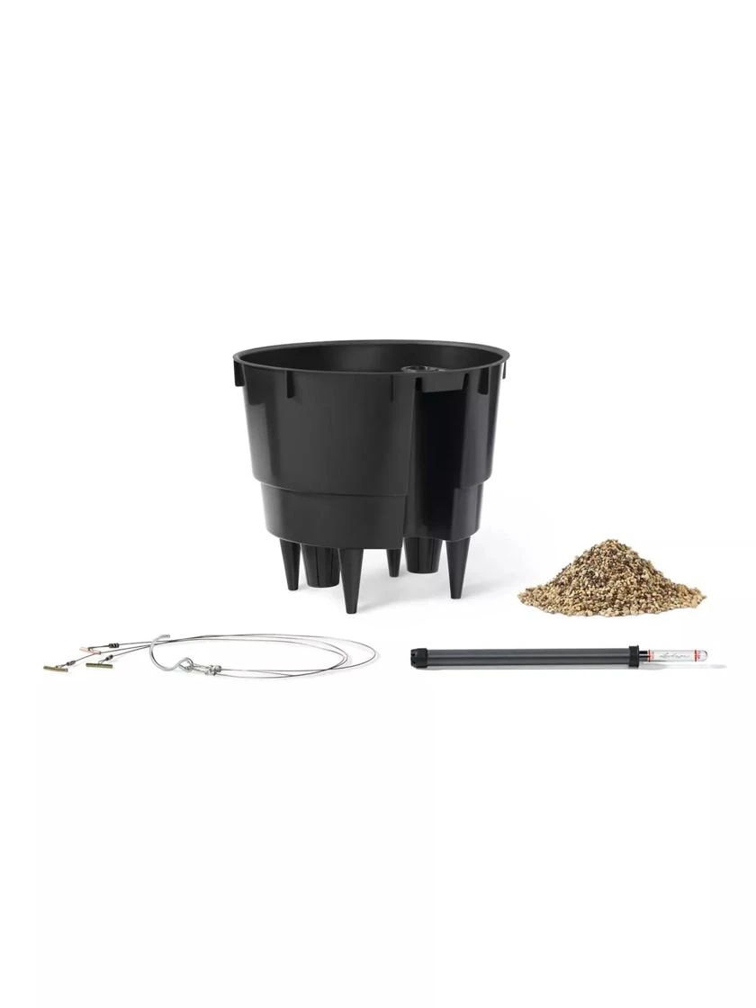 This all-in-one planter includes a specially formulated granular material, called Lechuza PON, that’s made from nutrient-enriched pumice, zeolites and lava. The clean, attractive material wicks water up from the built-in reservoir, aerates the roots and provides your plant with nutrition. A layer of Lechuza PON spread over the reservoir wicks water to the potting mix around your plant’s roots.